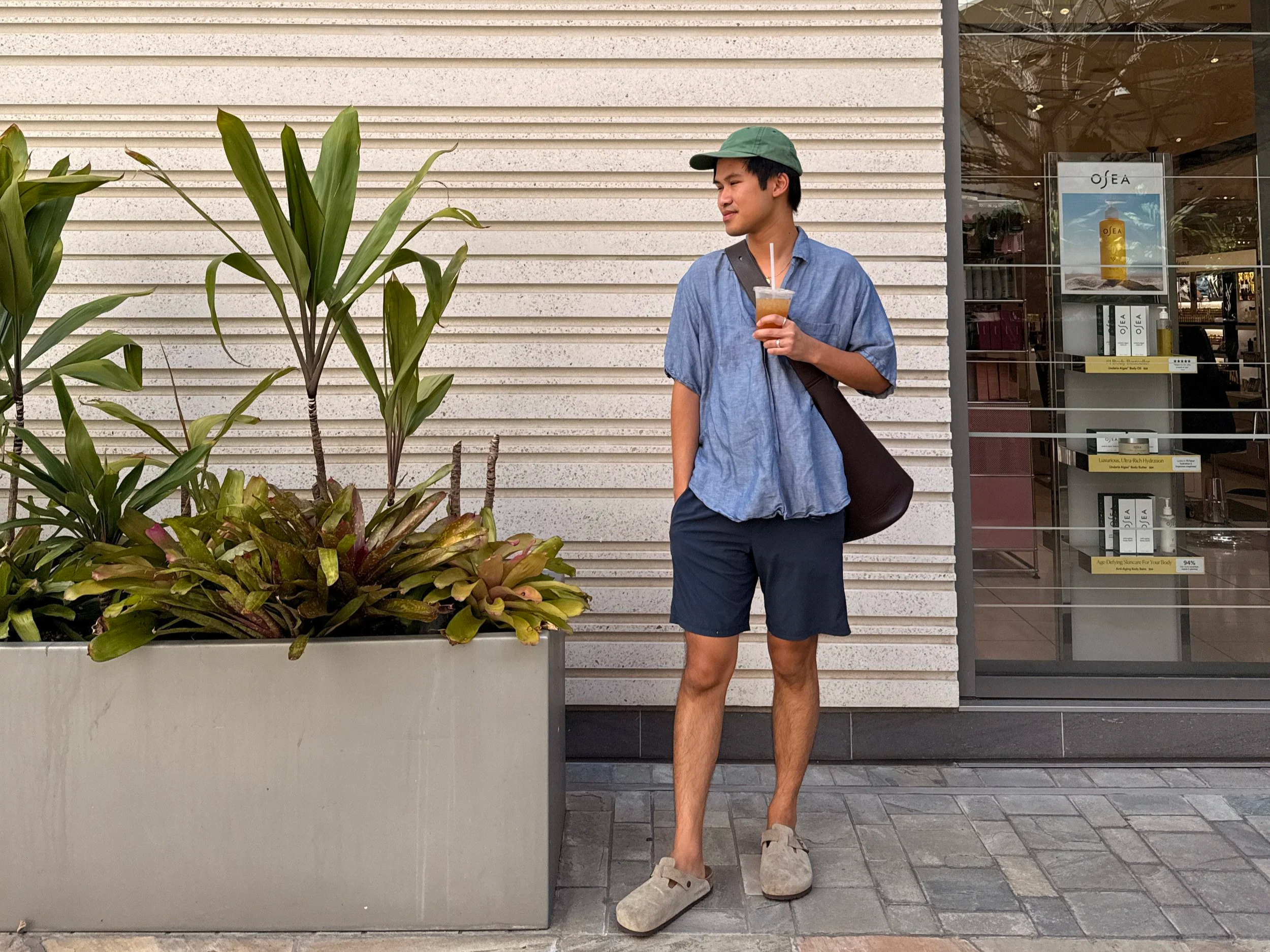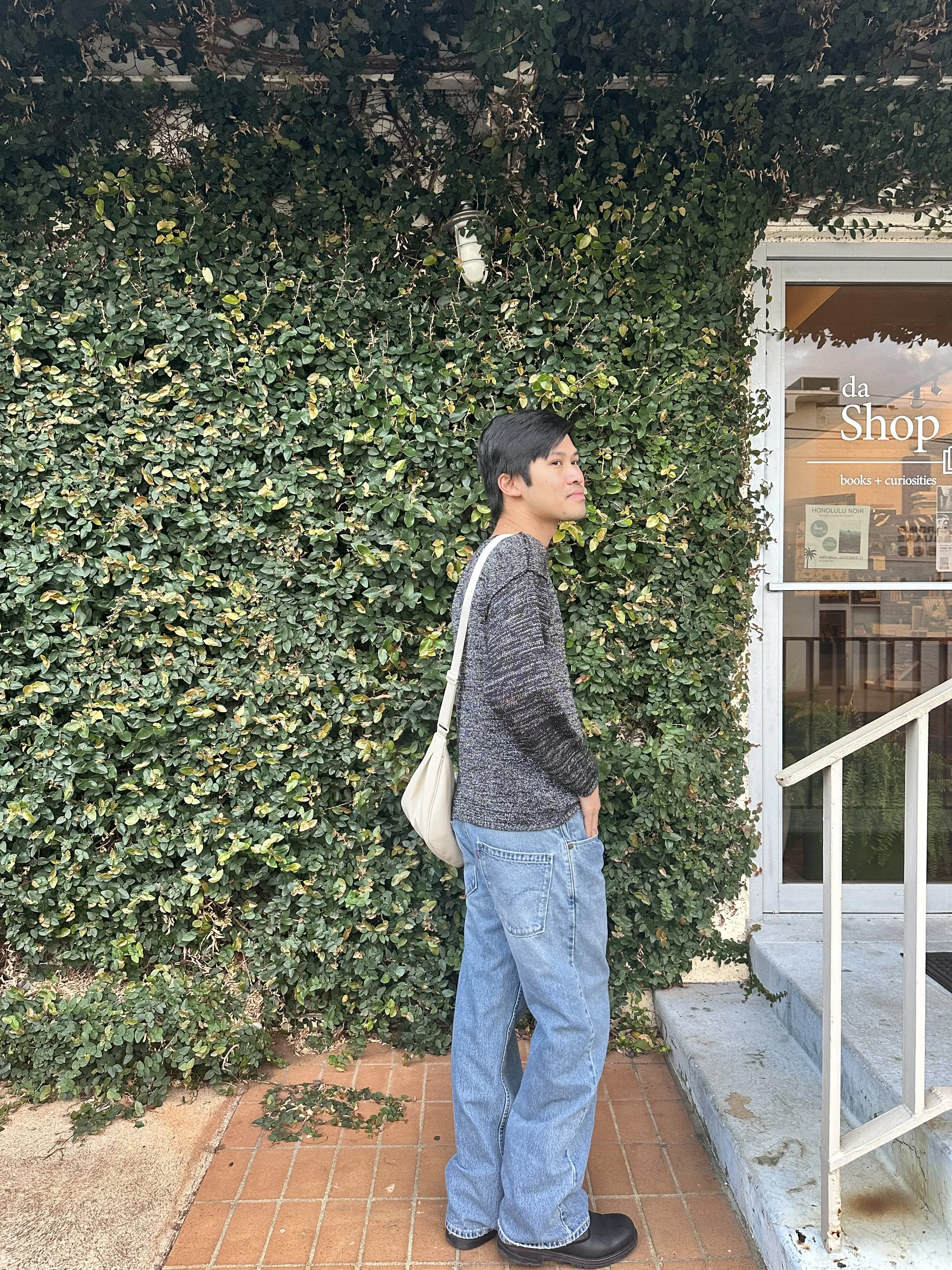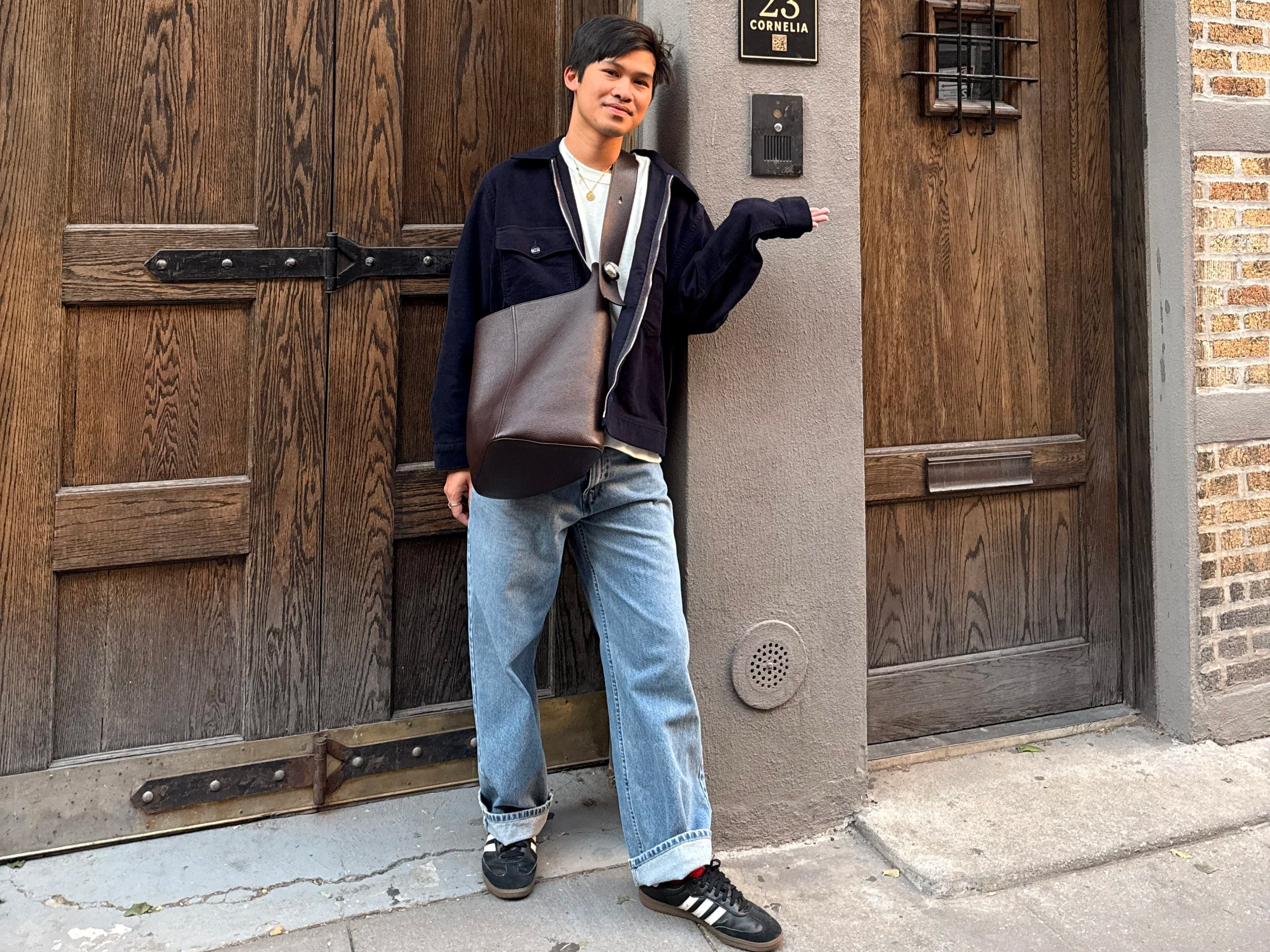 They pair effortlessly with my favorite blue linen shirt from Salvage Public. Simple, casual, and surprisingly versatile. On cooler days, I’ll throw on a thrifted Levi’s jacket I picked up from a secondhand shop in Williamsburg, a place I discovered through a social media recommendation while visiting New York. Each piece carries not just utility and function, but a memory.